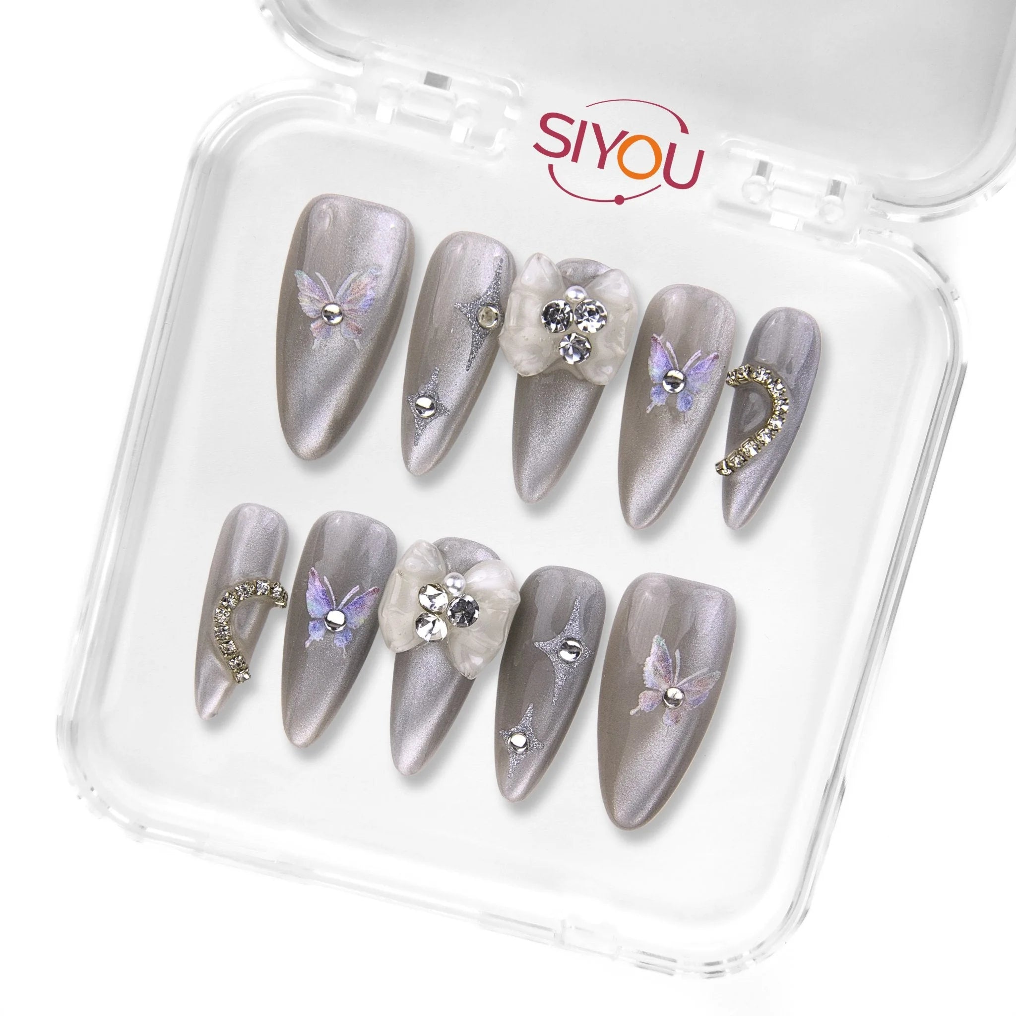 10 handmade reusable press-on nails, adhesive tabs, nail file, cuticle pusher, alcohol prep pad