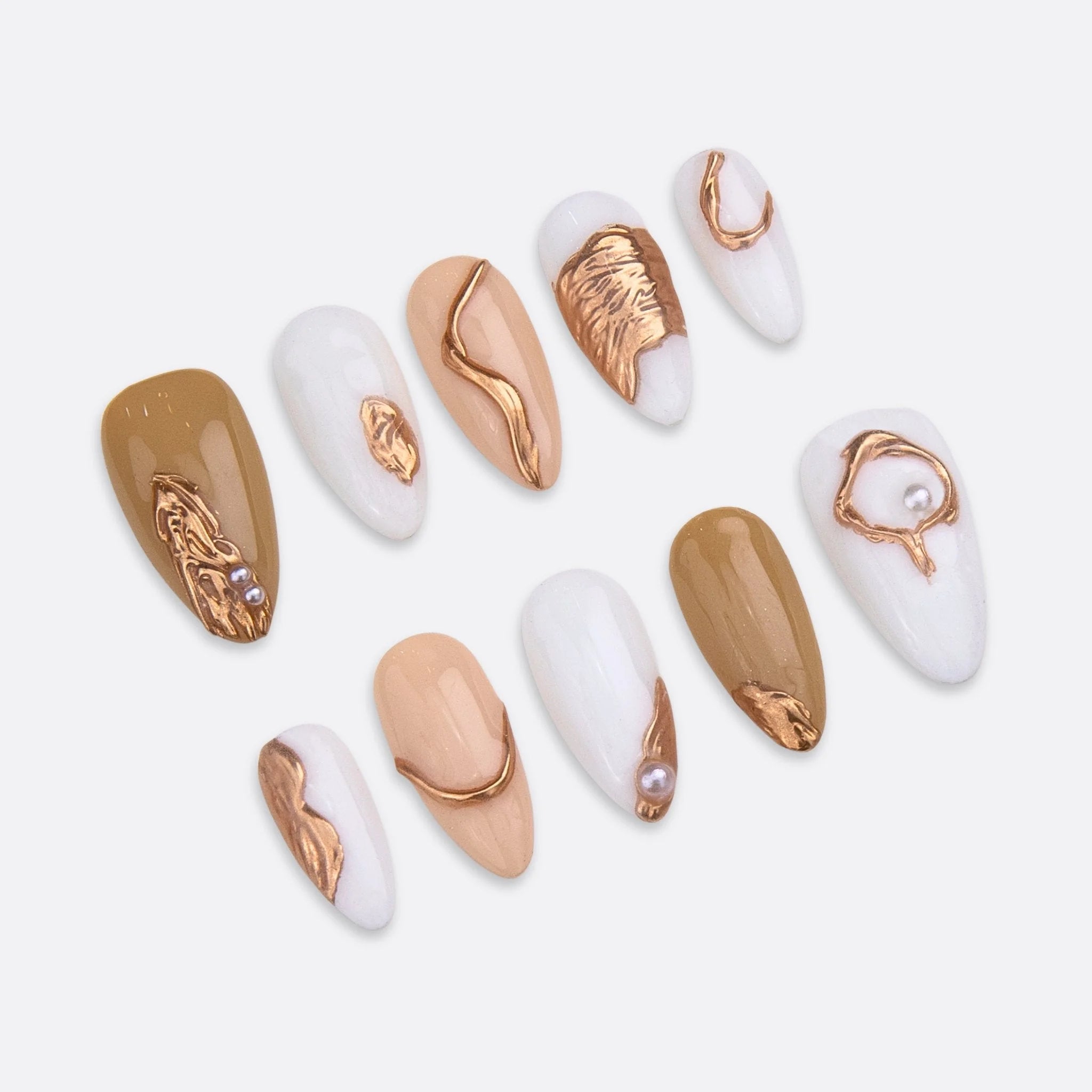10 handmade reusable press-on nails, adhesive tabs, nail file, cuticle pusher, alcohol prep pad