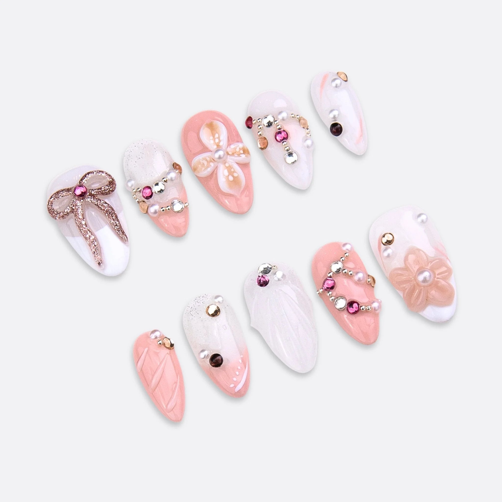 10 handmade reusable press-on nails, adhesive tabs, nail file, cuticle pusher, alcohol prep pad