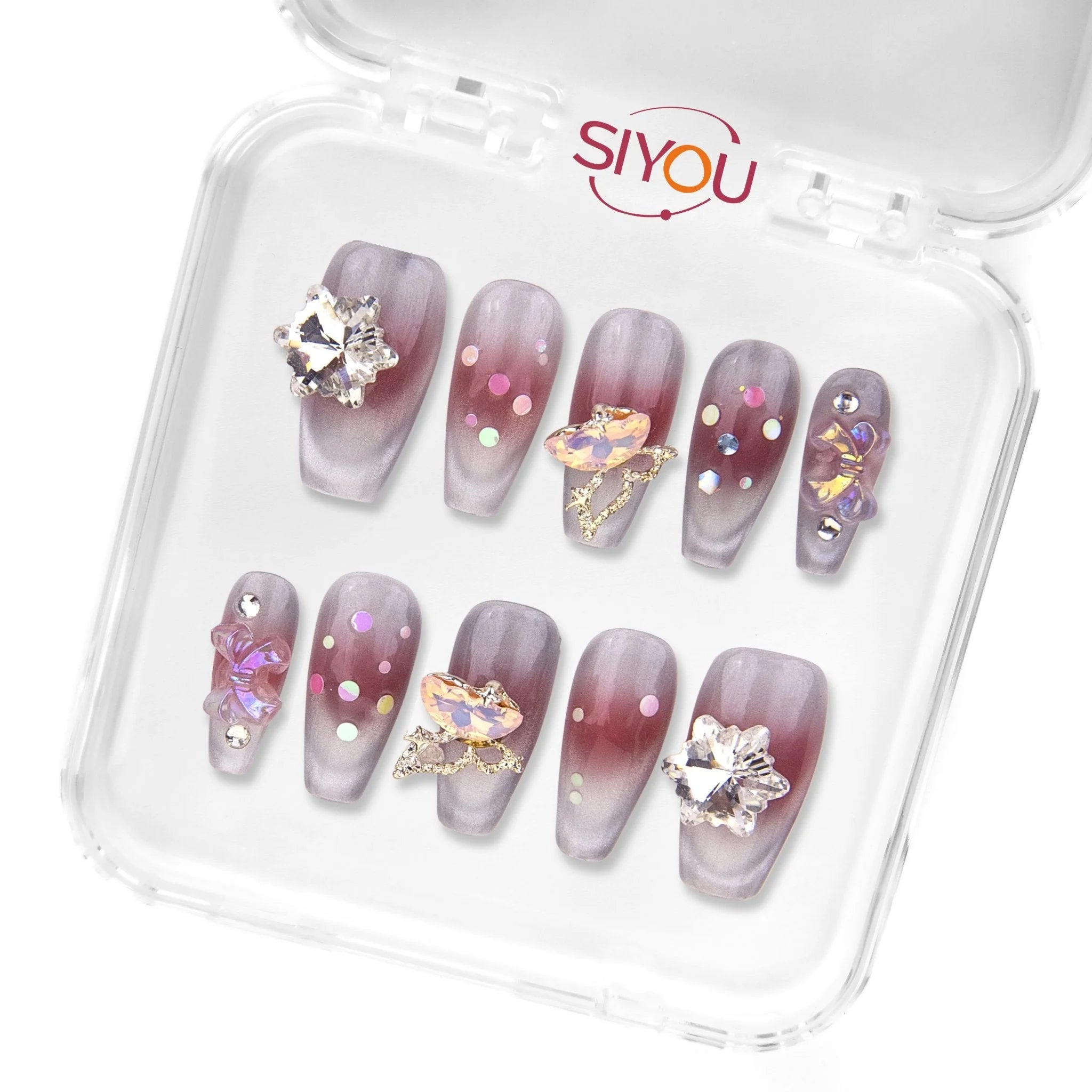 10 handmade reusable press-on nails, adhesive tabs, nail file, cuticle pusher, alcohol prep pad
