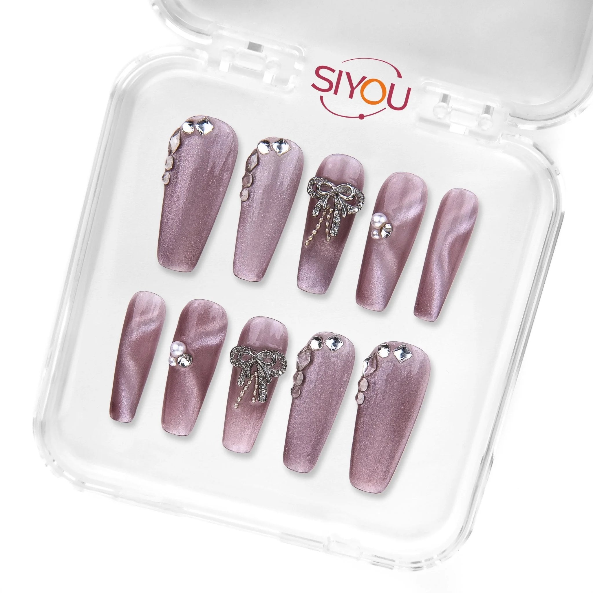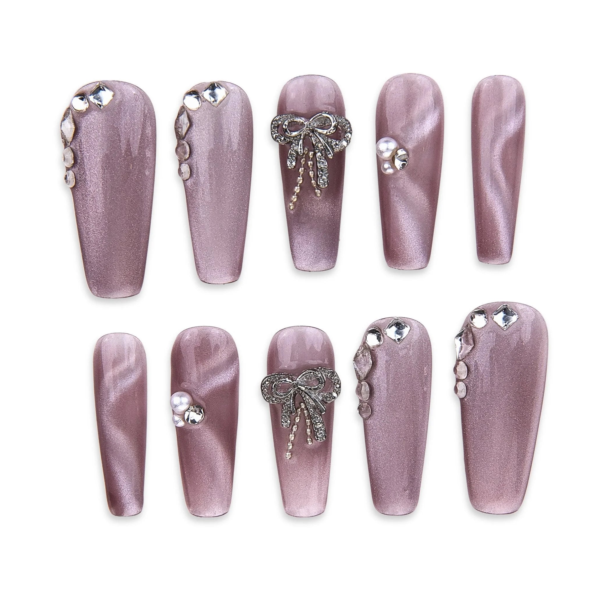 10 handmade reusable press-on nails, adhesive tabs, nail file, cuticle pusher, alcohol prep pad