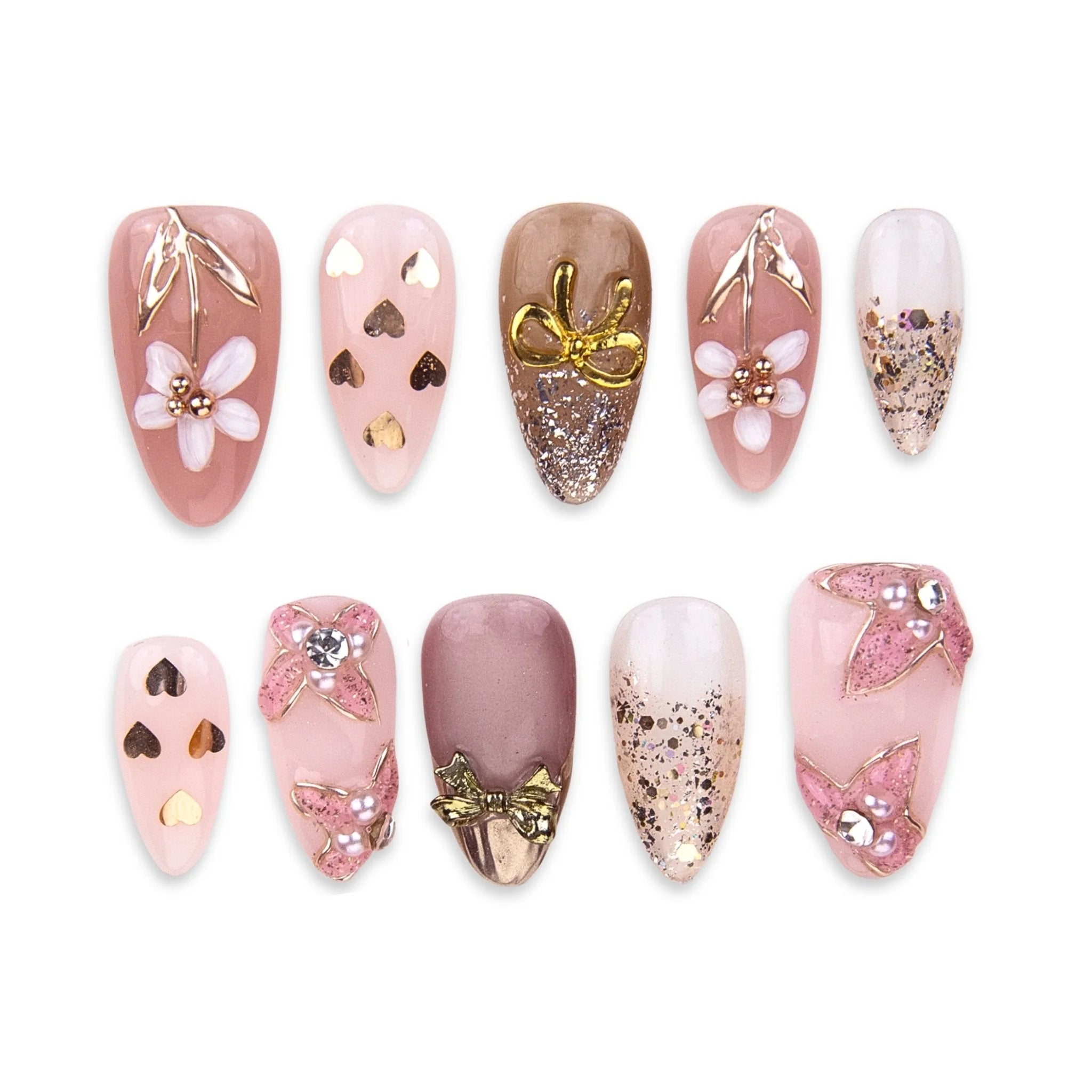 10 handmade reusable press-on nails, adhesive tabs, nail file, cuticle pusher, alcohol prep pad