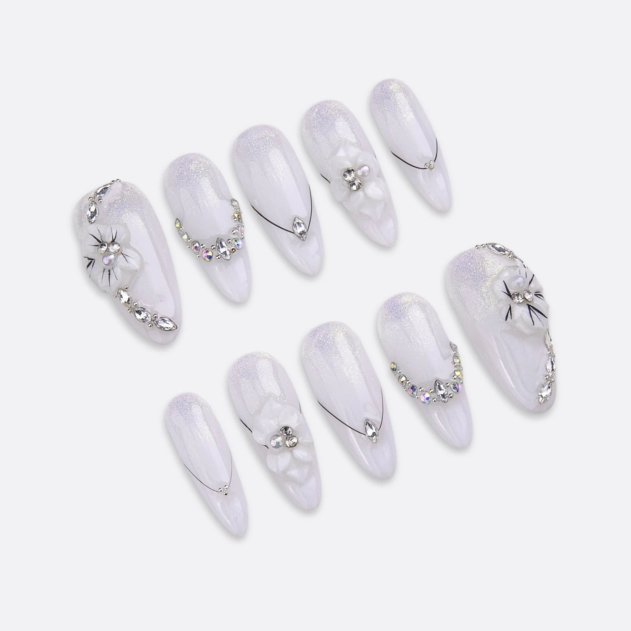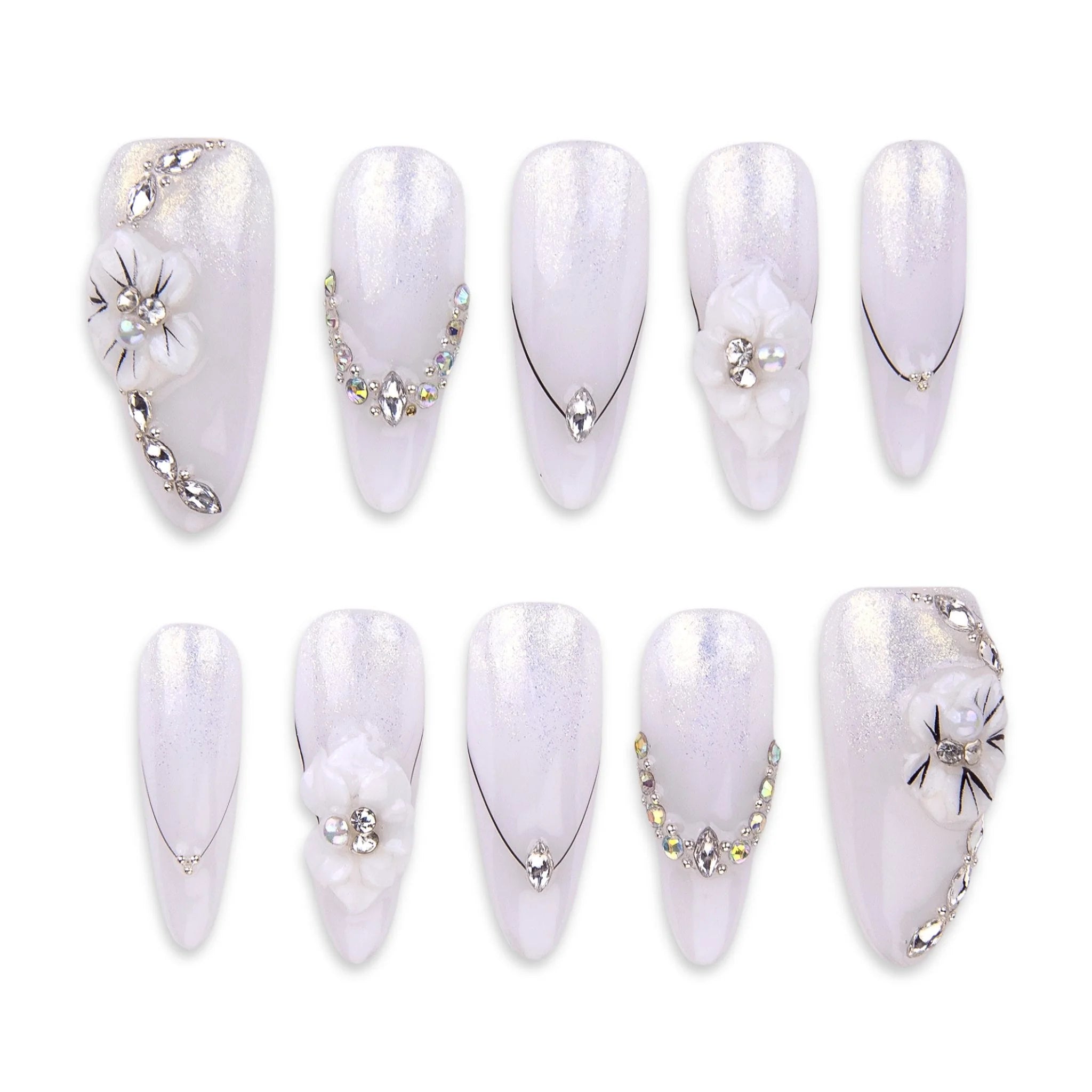 10 handmade reusable press-on nails, adhesive tabs, nail file, cuticle pusher, alcohol prep pad