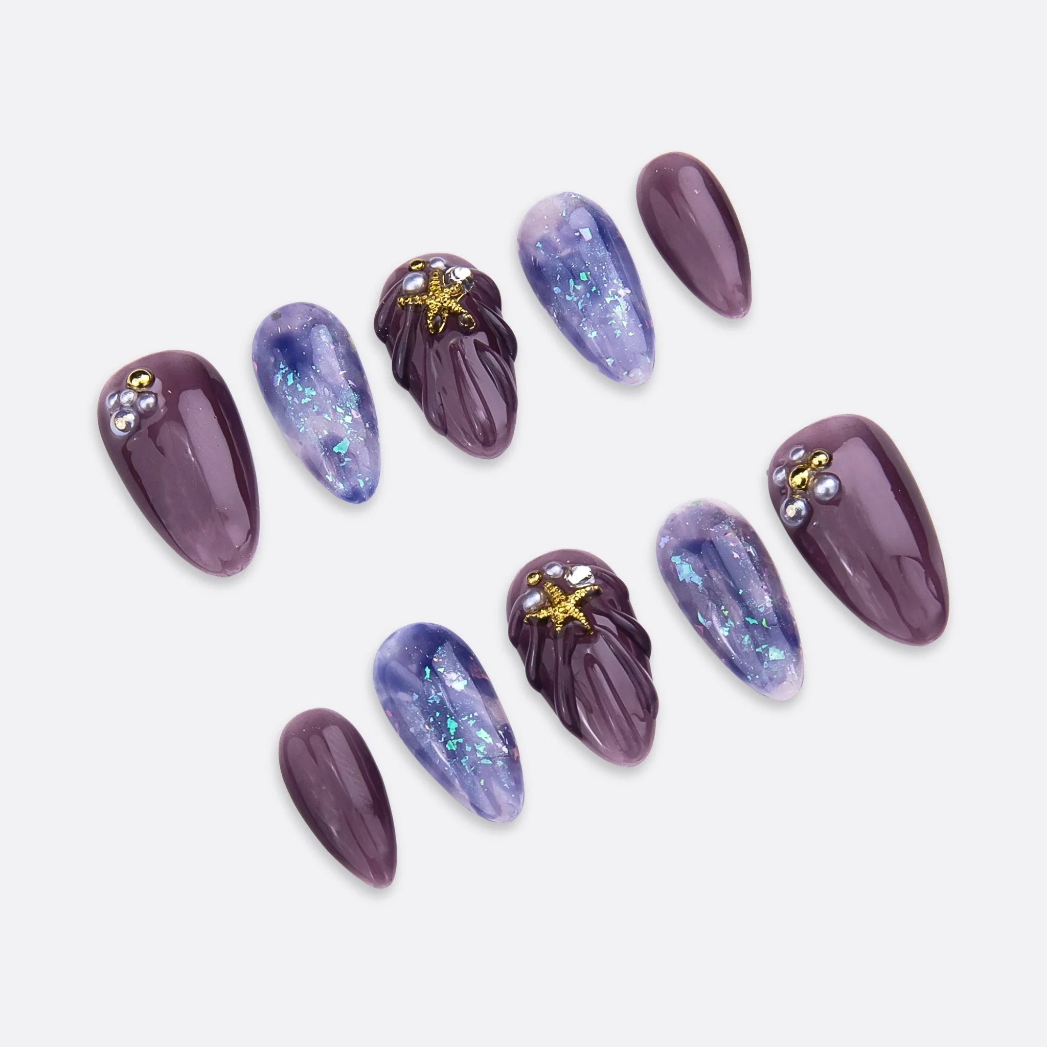 10 handmade reusable press-on nails, adhesive tabs, nail file, cuticle pusher, alcohol prep pad