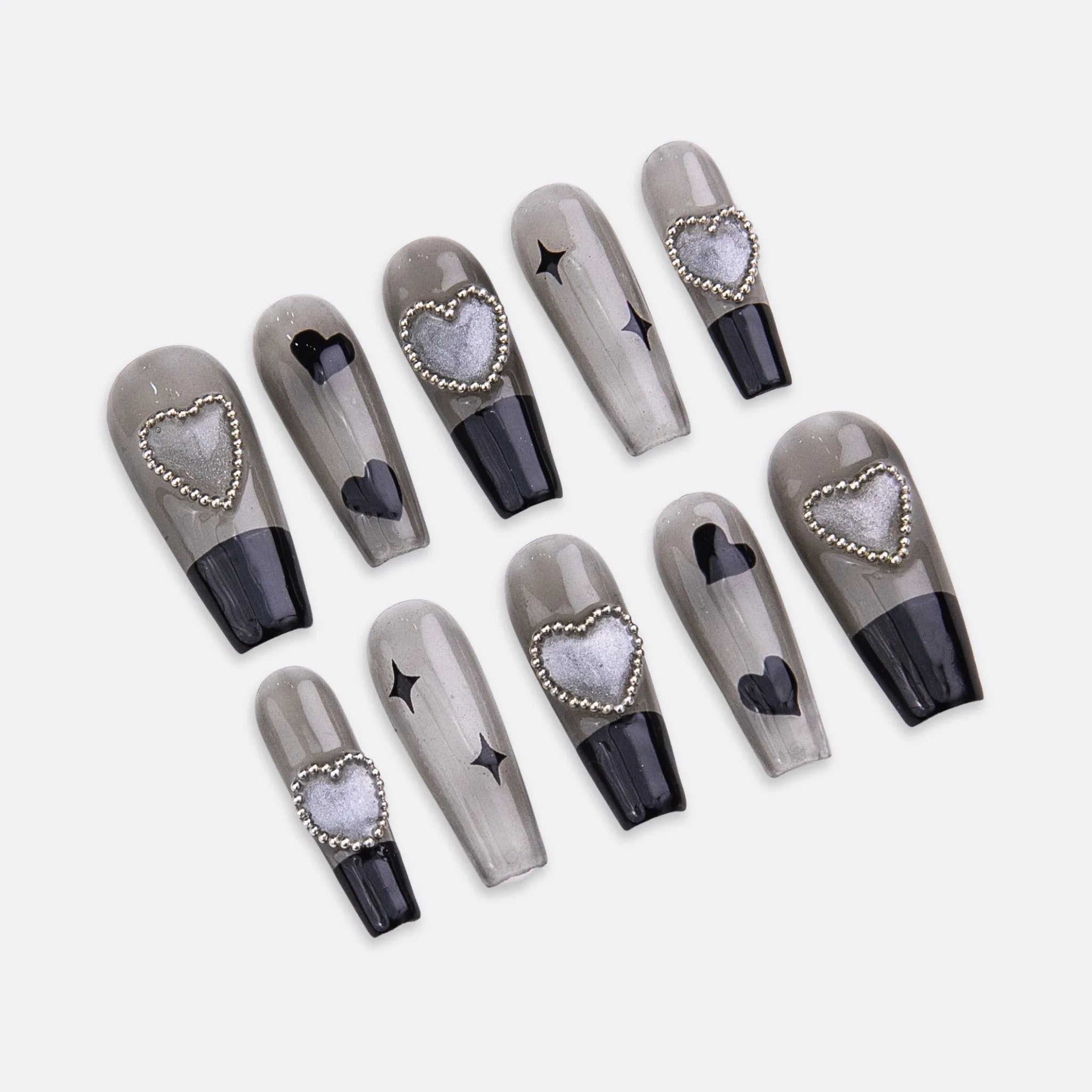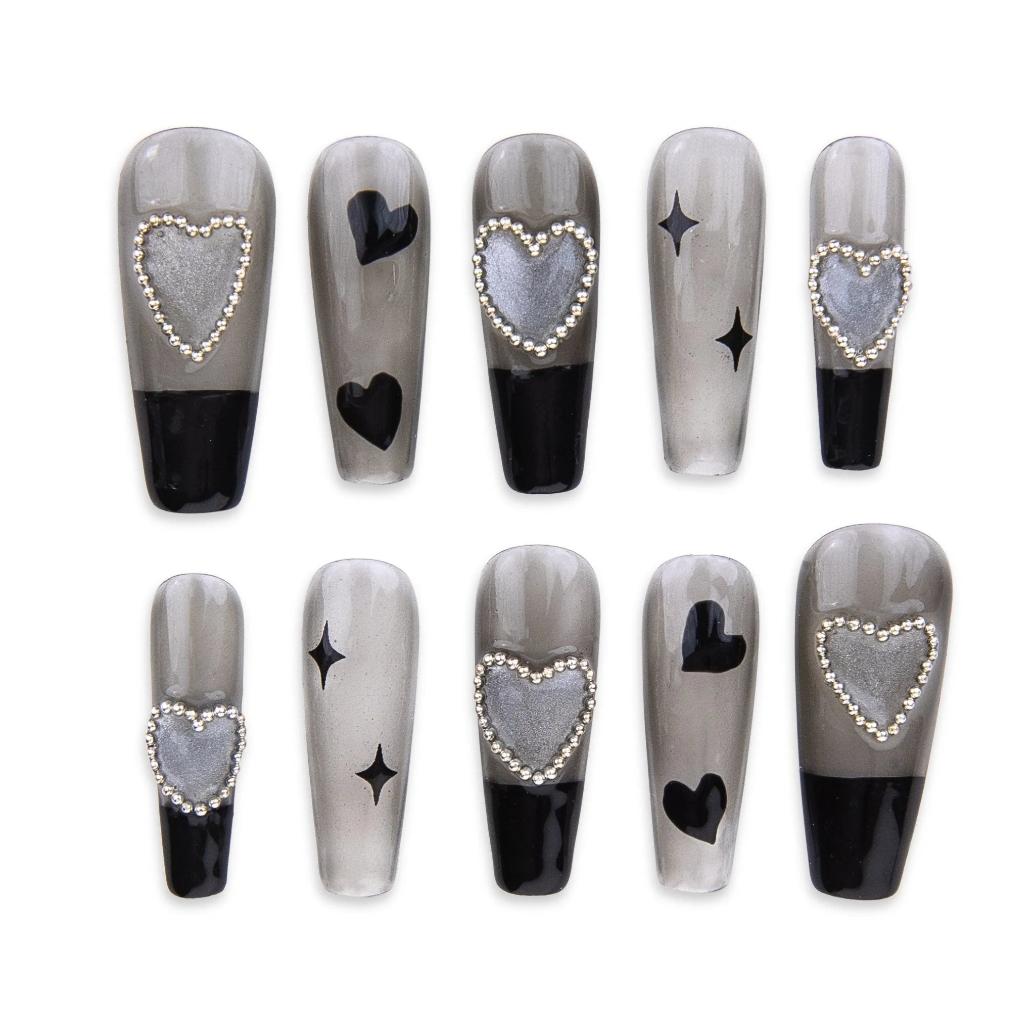 10 handmade reusable press-on nails, adhesive tabs, nail file, cuticle pusher, alcohol prep pad